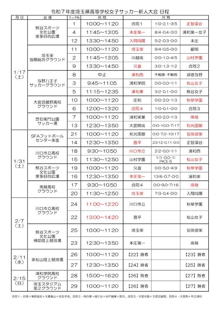 2/7(土)川口市立高校会場の試合時間が変更されています。